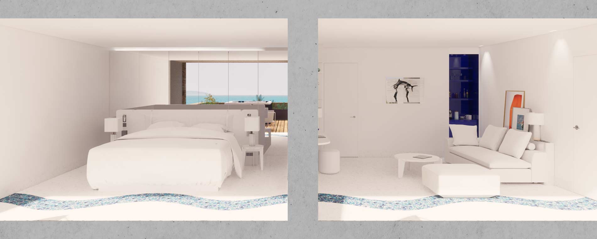 Toutes nos suites offrent une vue imprenable sur la mer, invitant à une contemplation infinie. Spacieuses et baignées de lumière, elles marient avec élégance un décor épuré et des œuvres d’art soigneusement sélectionnées, sublimant l’horizon sans jamais le détourner.