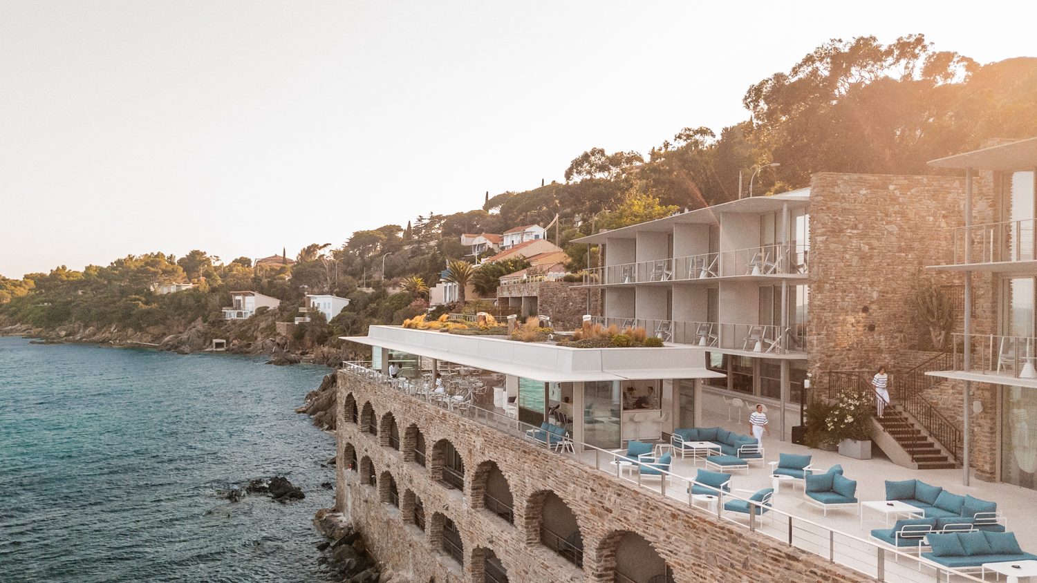 À tout moment de la journée, le Bar des Roches vous accueille dans un cadre privilégié, offrant une vue panoramique imprenable sur la baie d’Aiguebelle et les Îles d’Or.